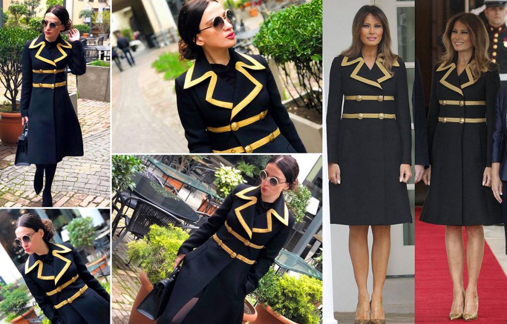 მელანია ტრამპსა და ნინო ჩხეიძეს „დოლჩე და გაბანას“ ერთნაირი პალტოები აცვიათ. მას შემდეგ, რაც ინტერნეტში ერთ-ერთ ღონისძიებაზე აშშ-ს პირველი ლედი 2018 წლის ახალი კოლექციიდან ცნობილი ბრენდის ოქროსფერი დეტალებით გაფორმებული შავი პალტოთი გამოჩნდა, ნინო ჩხეიძის სოცქსელში ასევე აიტვირთა ფოტო, სადაც ქართველ მომღერალს ზუსტად იგივე პალტო აცვია. უცხოური პრესა წერს, რომ მელანია ტრამპის ამ პალტოს ფასი 3,595 დოლარია.